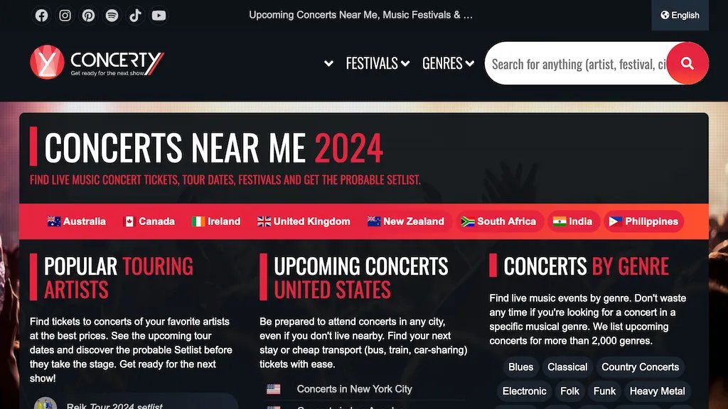 ما هو توقع قائمة الأغاني Concerty AI؟ Concerty تخمن قائمة الأغاني المحتملة للحفل التالي بناءً على الحفلات السابقة بفضل الذكاء الاصطناعي. يمكنك أيضًا الاستماع إلى قائمة تشغيل الحفل التالي على Spotify.... See More