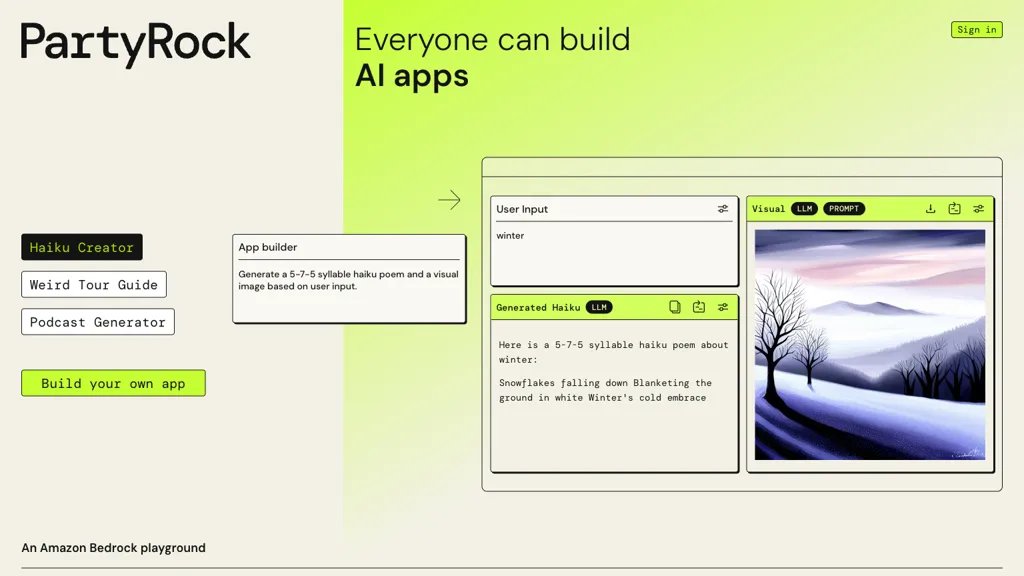 ما هو PartyRock؟ "PartyRock هي أداة ذكاء اصطناعي توليدية تقدمها AWS وتتيح للمستخدمين إنشاء تطبيقات الذكاء الاصطناعي دون الحاجة إلى الترميز. باستخدام أداة إنشاء التطبيقات البديهية من PartyRock، يمكن... See More