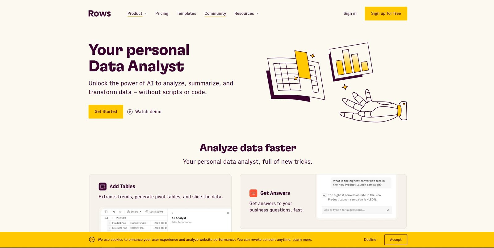 ما هو Rows؟ Rows.com هو جدول بيانات من الجيل التالي. إنه أسهل طريقة لاستيراد البيانات من أدوات SaaS وقواعد البيانات وواجهات برمجة التطبيقات، مثل Notion وGoogle Analytics وBigQuery وHubSpot والمزيد. يم... See More