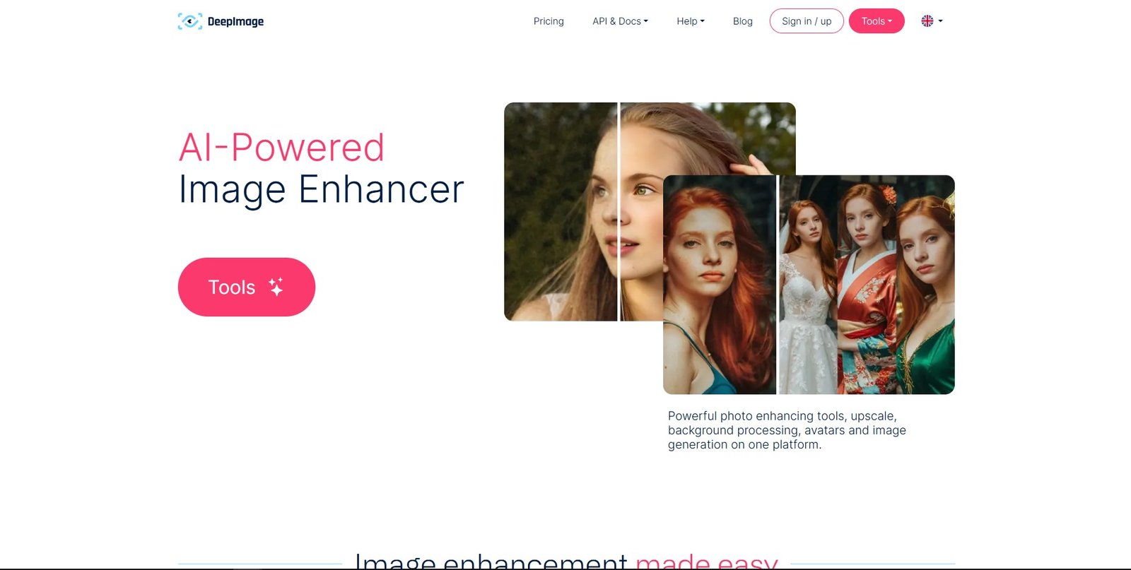 ما هو Deep Image؟ Deep-Image AI Photo Enhancer هي أداة تعتمد على الذكاء الاصطناعي تعمل على تحسين الصور بنقرة واحدة فقط، وإزالة العيوب، وتصحيح الألوان والإضاءة، وزيادة حجم الصورة مع الحفاظ على الجودة.... See More