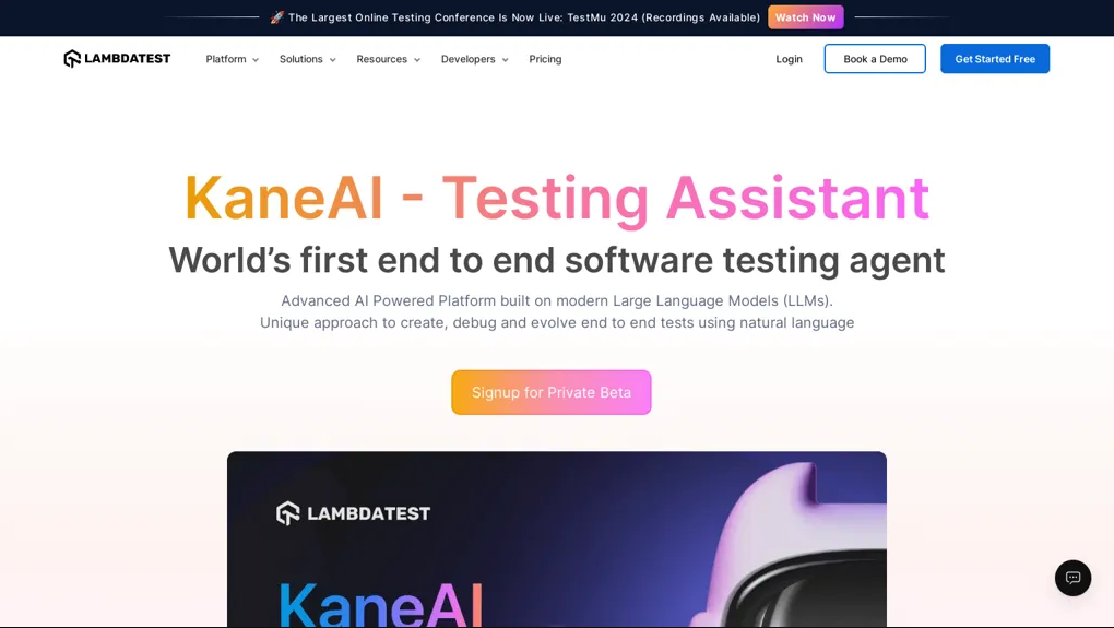 ما هو KaneAI من LambdaTest؟ KaneAI من LambdaTest هو مساعد اختبار الذكاء الاصطناعي الأول من نوعه مع ميزات الذكاء الاصطناعي الأولى في الصناعة مثل تأليف الاختبار وإدارته وإمكانيات التصحيح التي تم إنشاؤها... See More