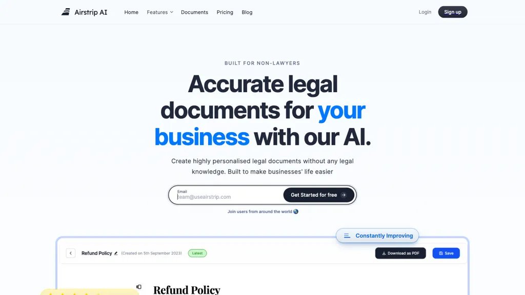 ما هو Airstrip AI؟ Airstrip AI هي أداة تمكن غير المحامين من إنشاء مستندات دقيقة ومتوافقة مع القانون لأعمالهم دون أي معرفة قانونية. إنها تبسط العملية من خلال توجيه المستخدمين من خلال أسئلة مخصصة واقتر... See More