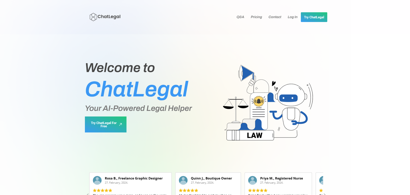 ما هو ChatLegal؟ ChatLegal - مساعد قانوني يعمل بالذكاء الاصطناعي، ChatLegal هو مساعد قانوني يعمل بالذكاء الاصطناعي يوفر إرشادات فورية حول مجموعة واسعة من الموضوعات القانونية مثل النزاعات العمالية وقا... See More