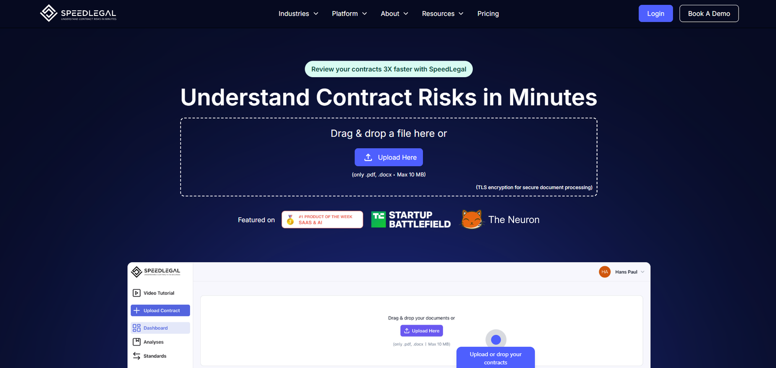 ما هو Speedlegal؟ SpeedLegal هي أداة مساعدة قانونية شخصية تعمل بالذكاء الاصطناعي مصممة لتبسيط عملية مراجعة العقود. بفضل القدرة على تحليل العقود بسرعة أكبر بثلاث مرات، تعمل كمفاوض من خلال تحديد المخاطر... See More