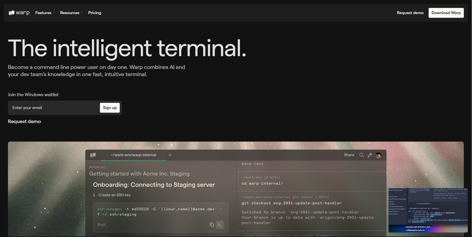 ما هو Warp AI؟ أداة Warp هي تطبيق محطة سريع وحديث وآمن يعيد تصور العمل الأرضي مثل التطبيق الحديث. يعتمد على Rust ويأتي مع ميزات مثل محطة أصلية سريعة والتوافق مع الإصدارات السابقة وإكمالات مدمجة لأكثر... See More