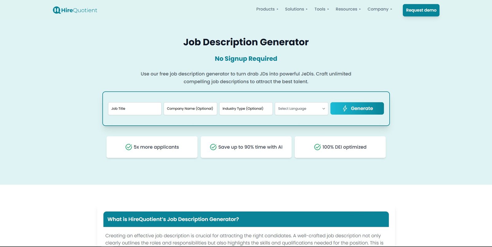 ما هو JD Generator؟ الأداة عبارة عن مولد مجاني لوصف الوظائف يستخدم أتمتة الذكاء الاصطناعي لتوفير ما يصل إلى 90% من الوقت وتحسين التنوع في العثور على المواهب المناسبة. تتميز بتجربة مستخدم قوية وضمان 4... See More