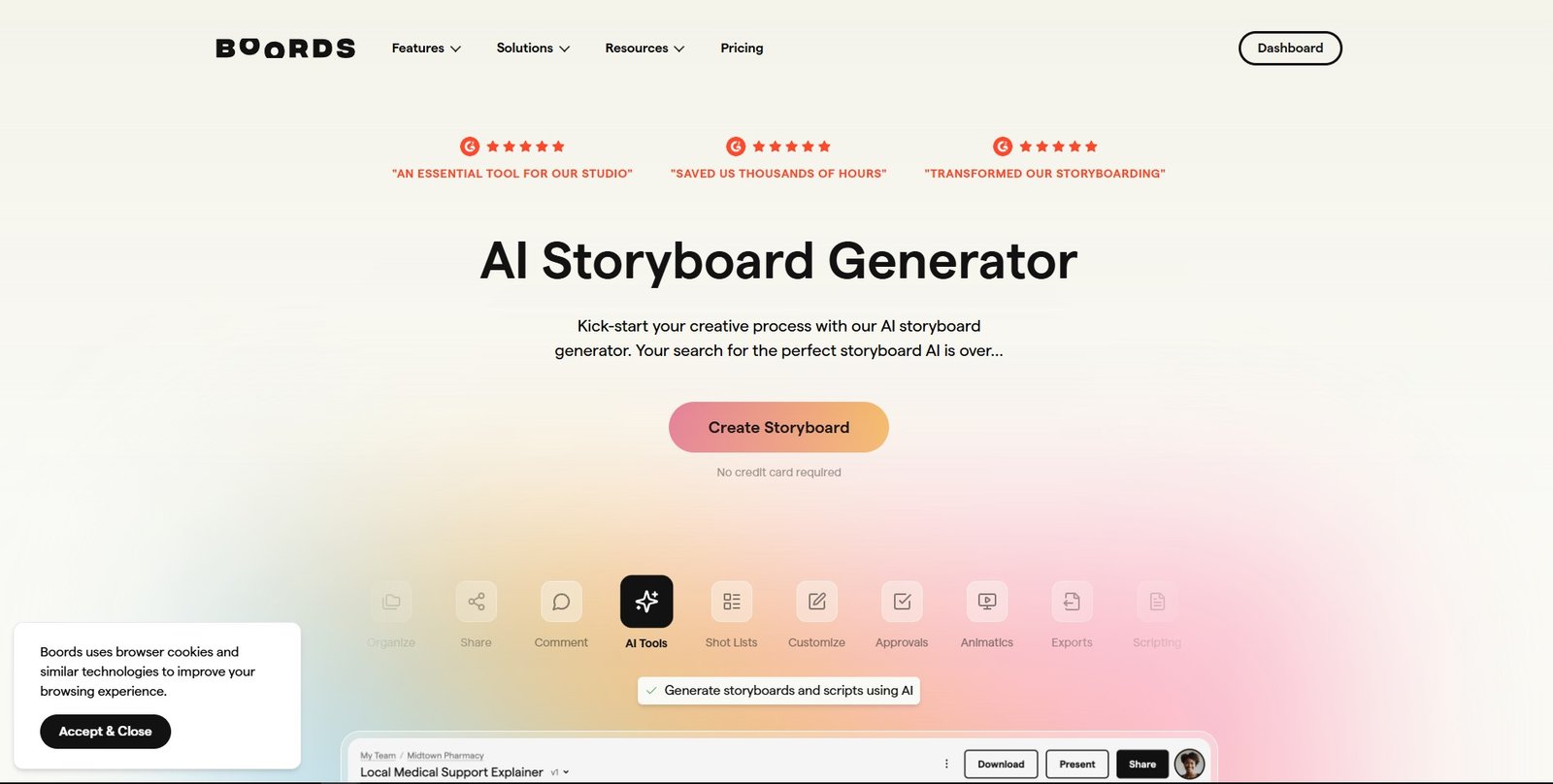 ما هو Boords؟ AI Storyboard Generator من Boords، أداة تتيح لك إنشاء لوحات قصصية مذهلة في دقائق معدودة، دون الحاجة إلى أي مهارات رسم. باستخدام AI Storyboard Creator من Boords، يمكنك بسهولة إضفاء ال... See More
