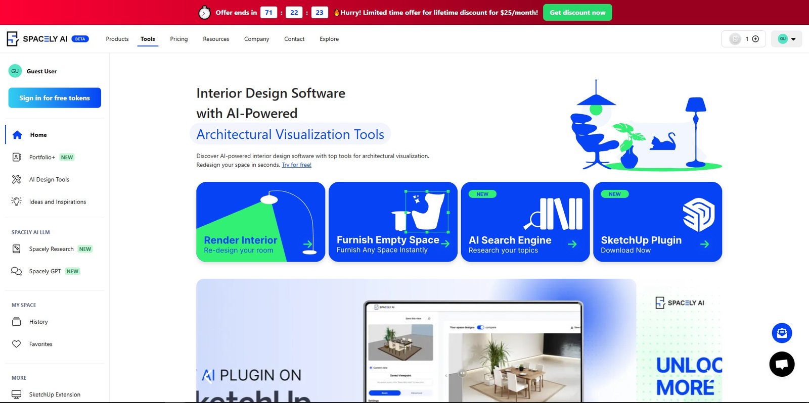 ما هو Spacely؟ Spacely.ai هي أداة تصميم داخلي تعمل بالذكاء الاصطناعي تقترح خيارات الأثاث بناءً على تفضيلات المستخدم. وهي تتيح للمستخدمين إنشاء مساحة أحلامهم دون قيود وتوفر إنشاء تصميمات غير محدودة. ا... See More