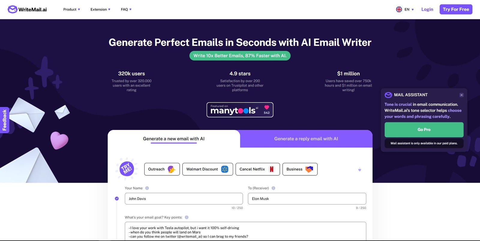 ما هو Writemail؟ Writemail.ai هي أداة كتابة بريد إلكتروني تعتمد على الذكاء الاصطناعي وتهدف إلى جعل كتابة البريد الإلكتروني سهلة، والقضاء على التوتر، وزيادة سرعة الرد على البريد الإلكتروني بنسبة 87%.... See More