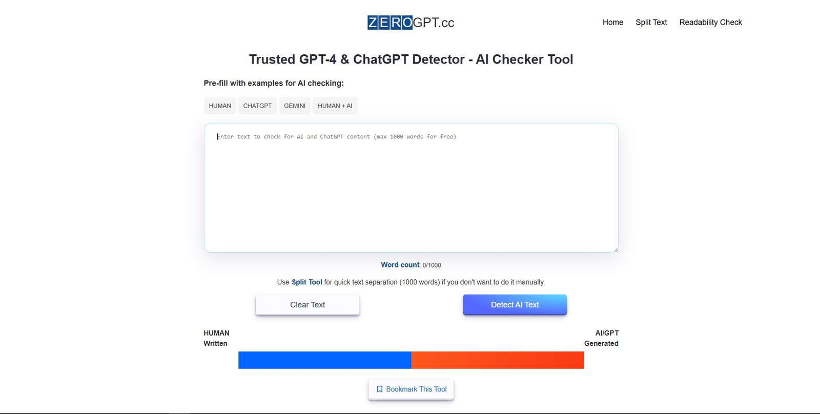 ما هو ZeroGPT.CC؟ ZeroGPT، أداة الكشف عن المحتوى بالذكاء الاصطناعي ZeroGPT هي أداة موثوقة للكشف عن المحتوى بالذكاء الاصطناعي تضمن صحة النص وأصالته من خلال الكشف الدقيق عن المحتوى الذي تم إنشاؤه بو... See More