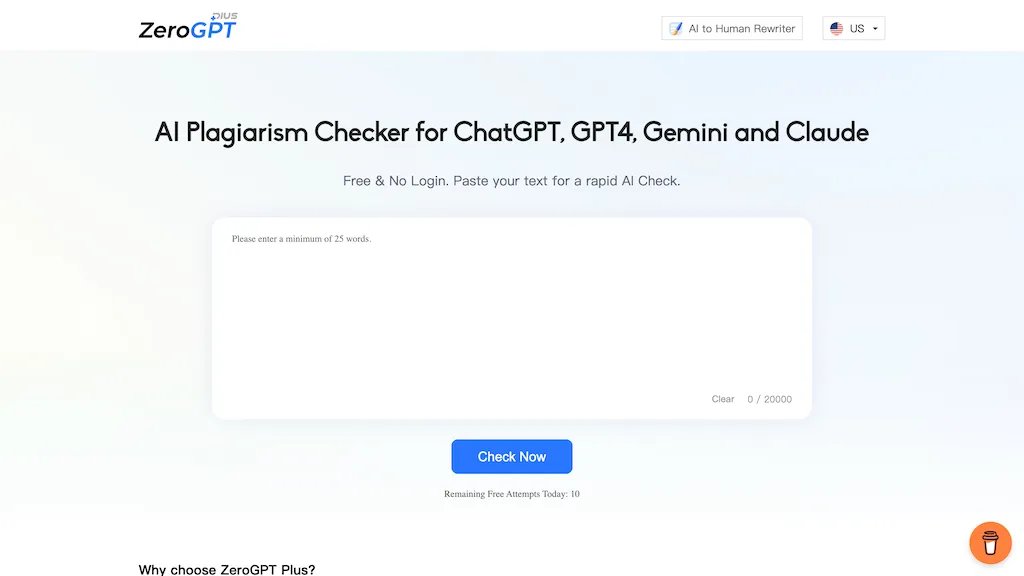 ما هو ZeroGPT Plus؟ ZeroGPT Plus هو أداة مجانية لفحص المحتوى باستخدام الذكاء الاصطناعي ولا تتطلب تسجيل الدخول. وهي مصممة لاكتشاف المحتوى الذي تم إنشاؤه بواسطة أدوات الذكاء الاصطناعي مثل ChatGPT وGemi... See More