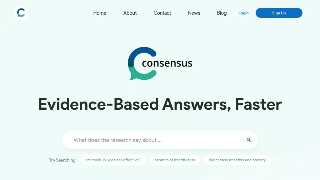 ما هو Consensus؟ Consensus هو محرك بحث يعمل بالذكاء الاصطناعي ويوفر إجابات تستند إلى الأدلة بشكل أسرع. ويساعد المستخدمين في العثور على أبحاث علمية مباشرة ودراسات تمت مراجعتها من قبل الأقران حول مجموع... See More
