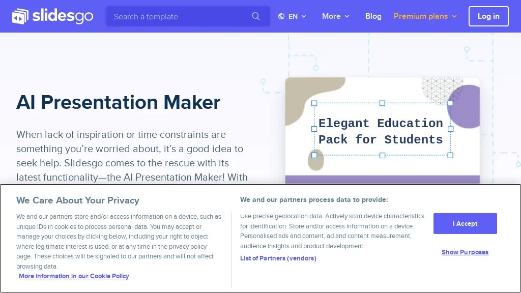 ما هو SlidesGo؟ إن أداة إنشاء العروض التقديمية AI من Slidesgo هي أداة مجانية تقوم بإنشاء العروض التقديمية في دقائق. وهي تسمح للمستخدمين بتخصيص الشرائح والاختيار من بين مجموعة متنوعة من أنماط التصميم،... See More
