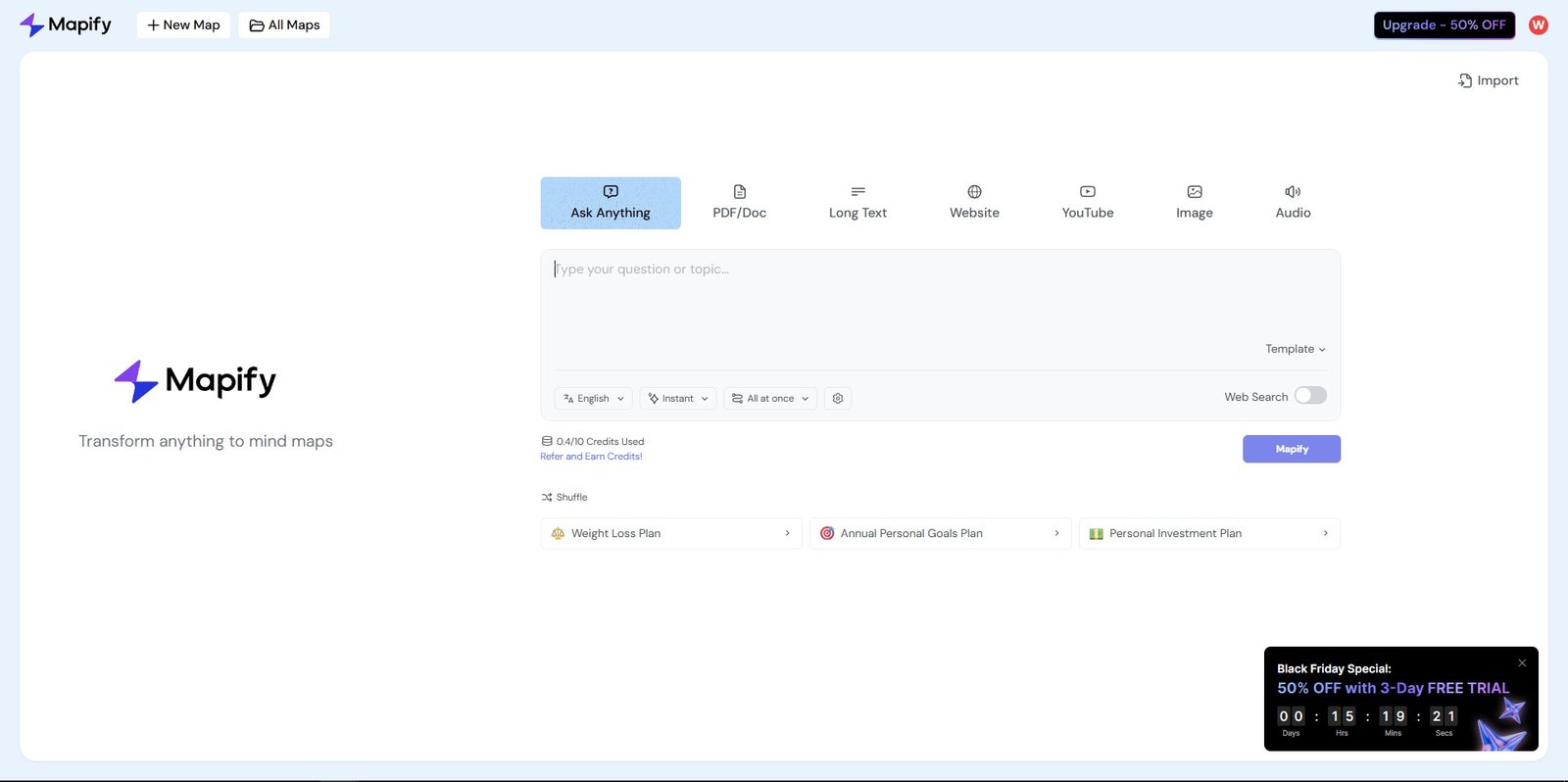 ما هو ChatMind؟ تسمى أداة الذكاء الاصطناعي Chatmind وهي تولد خرائط ذهنية عالية الجودة ومفصلة ومتعددة المستويات ومتعددة الفروع. وهي تسمح بالعروض التقديمية بنقرة واحدة، ودمج الإطارات، والعصف الذهني، وإ... See More