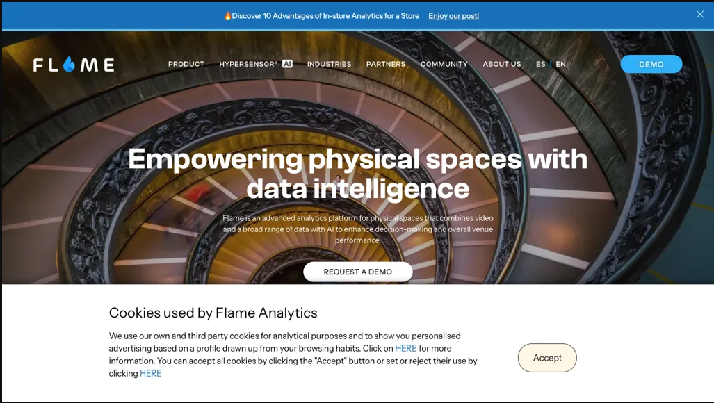 ما هو flameanalytics.com؟ تقدم Flame Analytics منصة تحليلات متقدمة للمساحات المادية، باستخدام الذكاء الاصطناعي لتحسين عملية اتخاذ القرار وأداء المكان. بفضل ميزات مثل قياس أداء المكان، وتحليل تدفق الع... See More