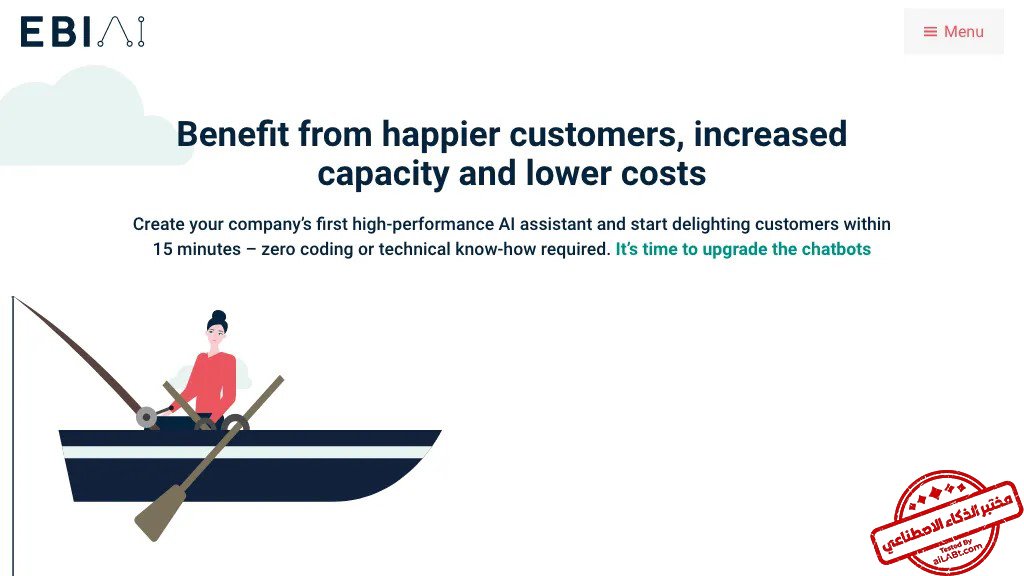 ما هو Ebi.Ai؟ إن روبوتات الدردشة التي تعمل بالذكاء الاصطناعي أساسية ومحدودة. يمكن لمساعد الذكاء الاصطناعي من EBI.AI التعامل مع 85% من استفساراتك الروتينية منذ اليوم الأول. يستغرق إعداده دقائق فقط. See More