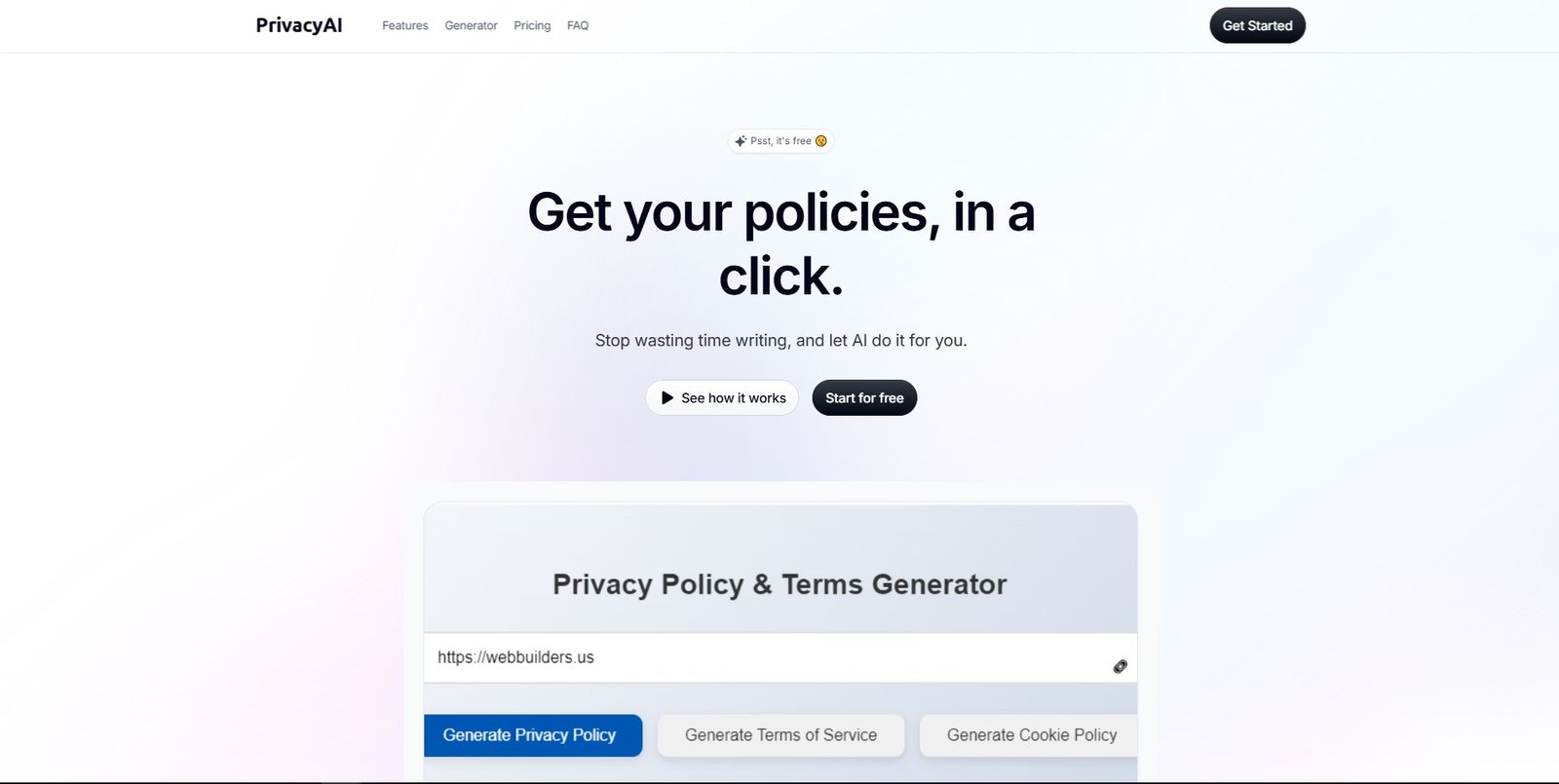 ما هو PrivacyAI؟ تم تصميم PrivacyAI لمساعدة المستخدمين في إنشاء مستندات قانونية أساسية مثل سياسات الخصوصية وشروط الخدمة وسياسات ملفات تعريف الارتباط. تعمل الأداة على تبسيط العملية من خلال أوضاع متعددة... See More