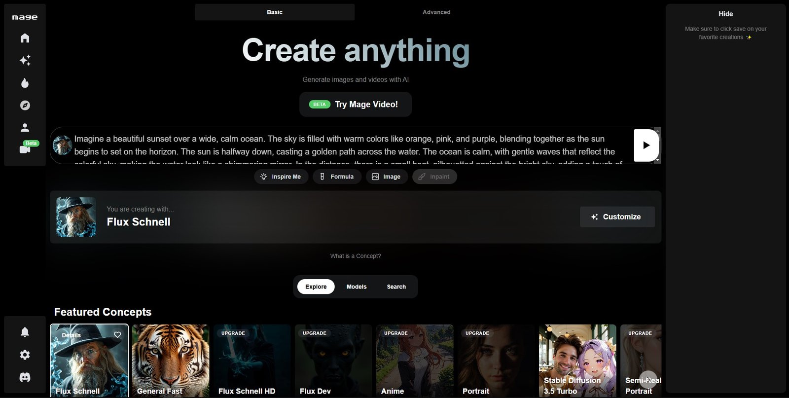 ما هو MageSpace؟ Stable Diffusion مجاني وسريع وغير مفلتر، وهو عبارة عن الذكاء الاصطناعي لتحويل النص إلى صورة. يقدم نماذج مختلفة على خطط مدفوعة. See More