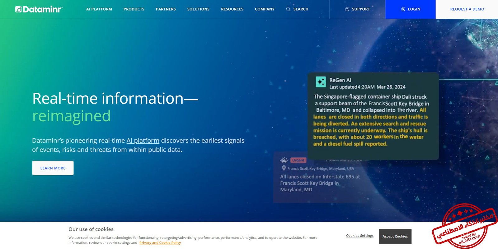 Conteما هو Dataminr؟ هو منصة ذكاء اصطناعي متقدمة تُستخدم لاكتشاف الأحداث والتهديدات في الوقت الحقيقي من البيانات العامة مثل الأخبار ومحتوى وسائل التواصل الاجتماعي. تُعد أداة رئيسية للمؤسسات الإعلامية... See More
