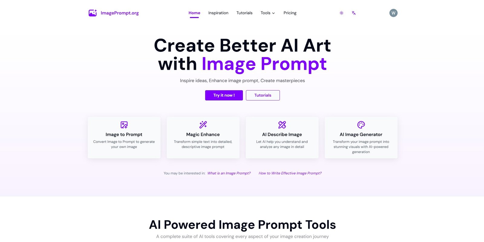 ما هو Image Prompt Generator؟ ImagePrompt.org هو موردك النهائي لإتقان الفن المولد بالذكاء الاصطناعي من خلال مطالبات الصور المحسنة. إنه يوفر مجموعة شاملة من الأدوات المصممة لصقل مهارات إنشاء المطالبات،... See More