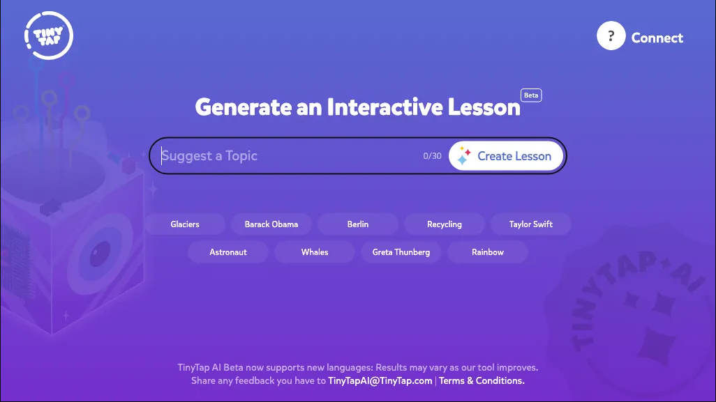 ما هو TinyTap AI؟ يُنشئ TinyTap AI دروسًا تفاعلية حول أي موضوع للتعلم داخل الفصل أو في المنزل. أنشئ ألعابًا تعليمية بأي لغة مع أنواع مختلفة من الأنشطة لتوفير تجربة تعليمية مع ملاحظات إيجابية وبناءة تج... See More