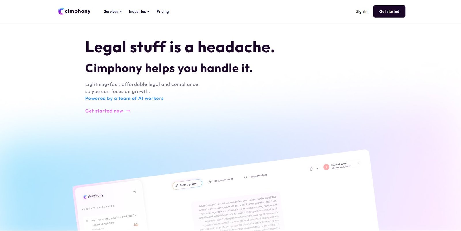 ما هو Cimphony؟ Cimphony هي خدمة قانونية مدعومة بالذكاء الاصطناعي تساعد الشركات على التعامل مع المهام القانونية مثل صياغة العقود وإدارة الملكية الفكرية وضمان الامتثال. إنها تجعل العمليات القانونية أسر... See More