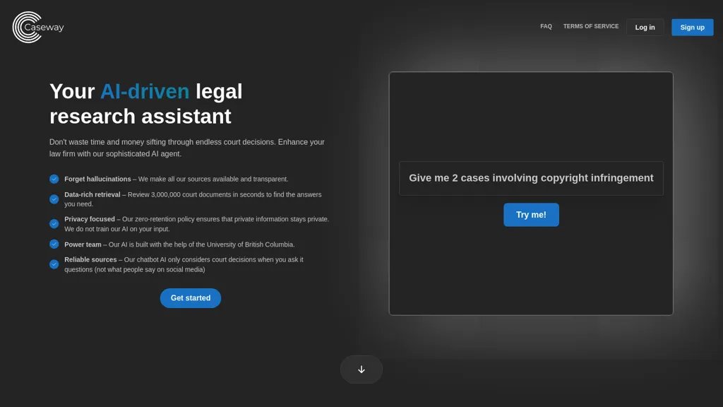 ما هو Caseway؟ Caseway هو مساعد بحث قانوني مدفوع بالذكاء الاصطناعي مصمم لتبسيط عملية العثور على قرارات المحكمة والمعلومات القانونية ذات الصلة. إنه يوفر نظام استرجاع غني بالبيانات قادر على مراجعة أكثر... See More