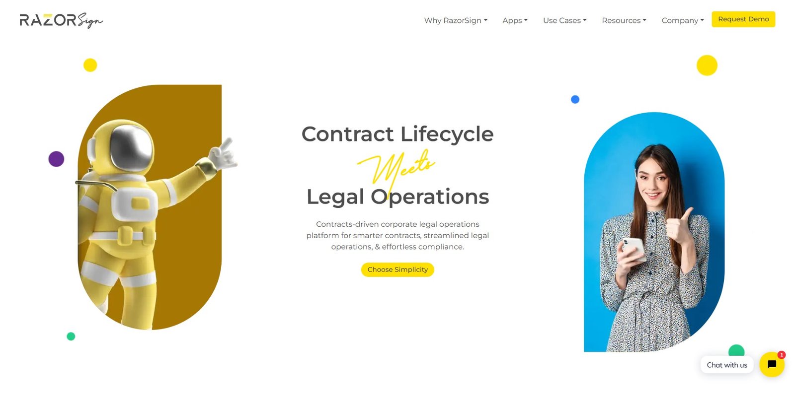 ما هي إدارة دورة حياة العقد؟ تجمع Razorsign بين إدارة دورة حياة العقد (CLM) والعمليات القانونية، مما يوفر تجربة بسيطة وآمنة وذكية. يمكنك أتمتة عملية العقد بالكامل على منصة العمليات القانونية للشركات ب... See More