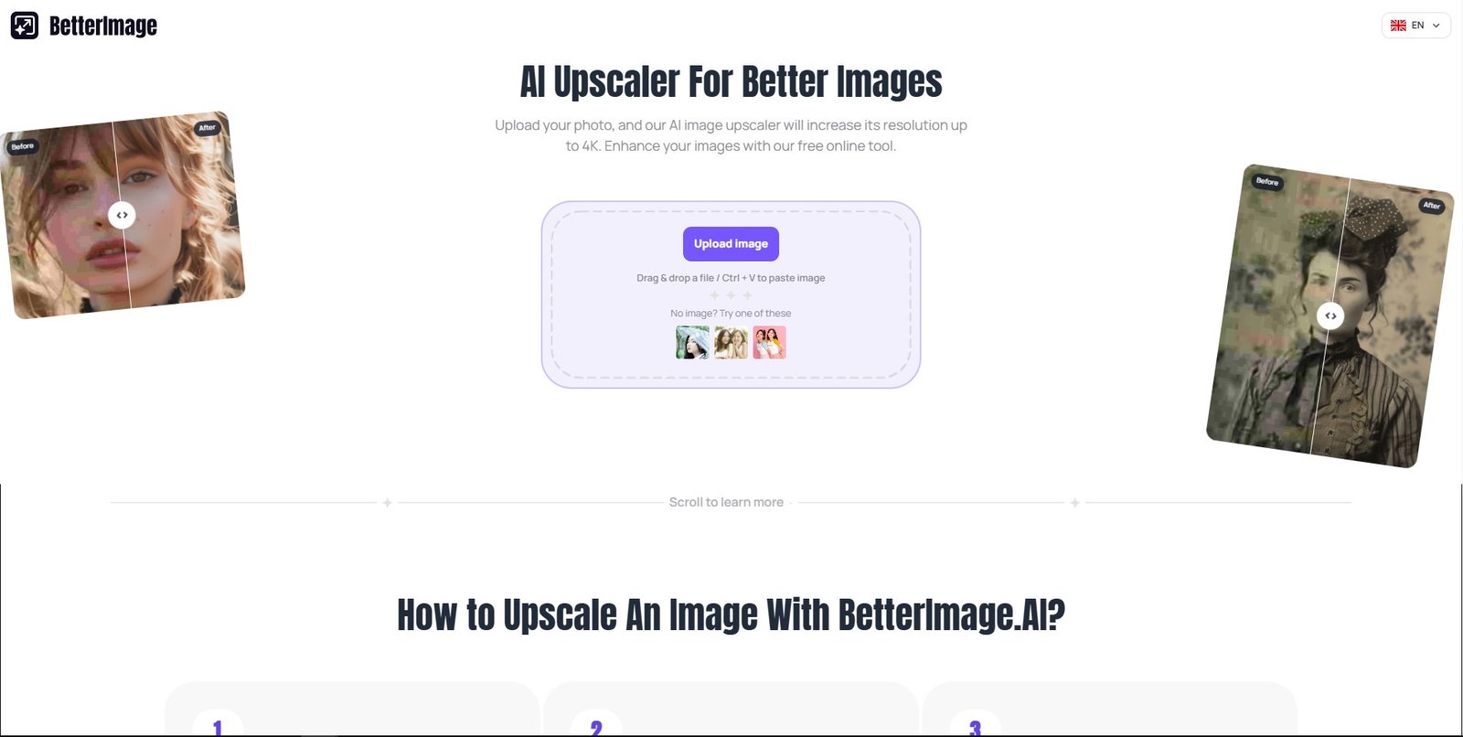 ما هو upscales.ai؟ AI Image Upscaler هي أداة سهلة الاستخدام عبر الإنترنت تستخدم تقنية الذكاء الاصطناعي لتحسين الصور بما يصل إلى 8 أضعاف جودتها الأصلية. باستخدام ميزة السحب والإفلات البسيطة، يمكن للمس... See More